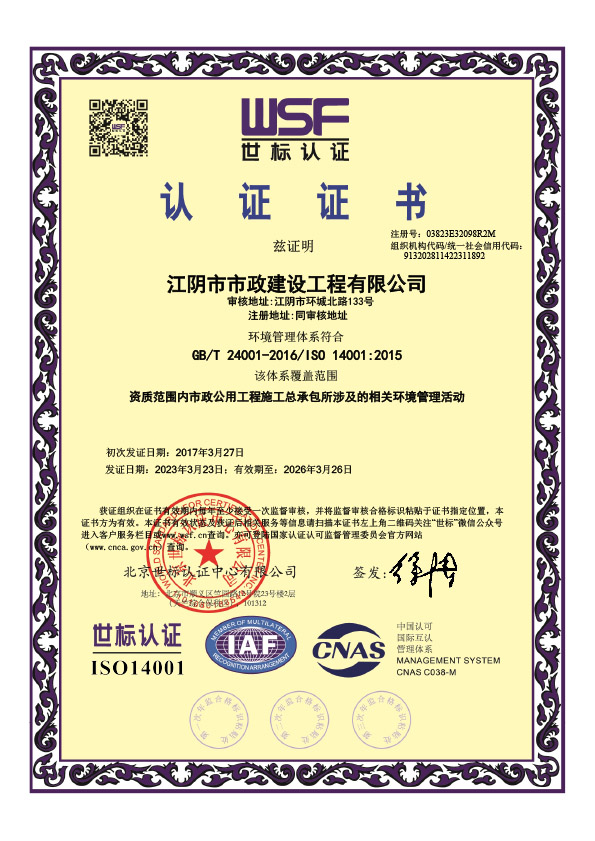 | • 江阴市澄江东路延伸段道路改造工程 | (2014年度) |